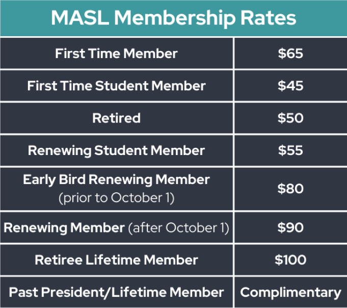 To renew your membership or become a first time MASL member, please complete the online registration form. .